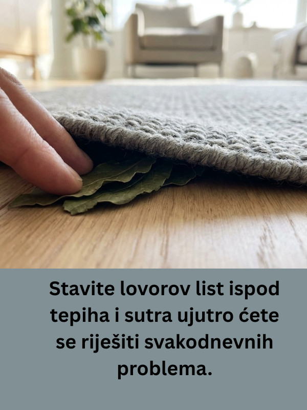 U svetu koji postaje sve ubrzaniji i stresniji, ponekad je potrebno da se setimo jednostavnih, ali dubokih metoda za očuvanje mentalnog zdravlja i energije. Stavite lovorov list ispod tepiha i pružite sebi šansu da pronađete mir, rešenja za svakodnevne probleme i ostvarite veći uspeh u životu. Ova mala praksa može biti ključna za poboljšanje kvaliteta vašeg života i stvaranje harmoničnog okruženja u kojem ćete moći da napredujete i uživate u svakom trenutku.